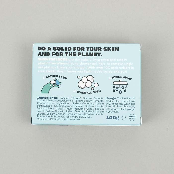 Shower Blocks are bars of solid shower gel, designed to reduce plastic waste from the millions of discarded shower gel bottles going to landfill and into our oceans every year.
