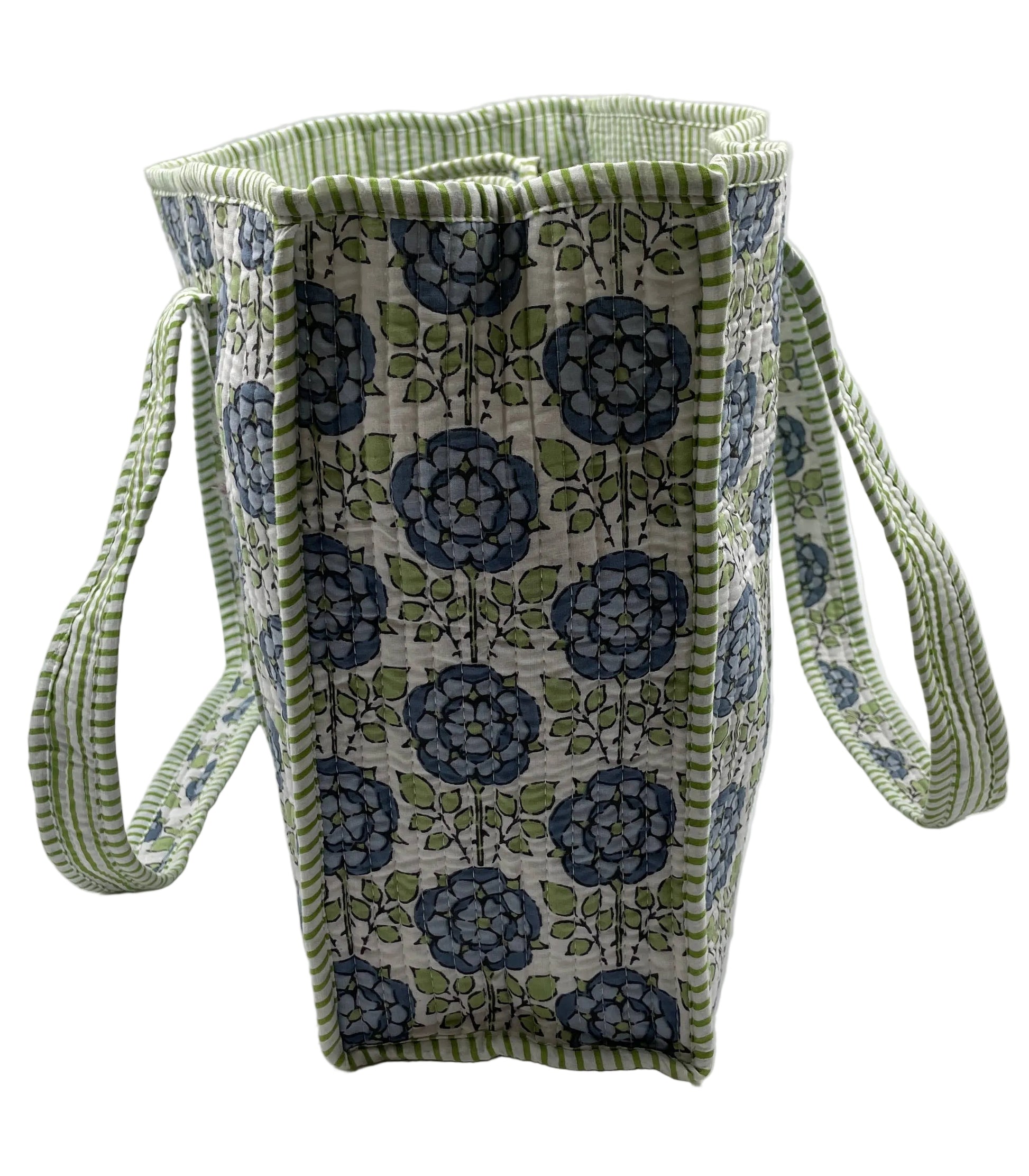 This Reversible Handmade Kantha Bag is a colourful tote bag crafted by hand using beautiful quality cotton, hand block printed using Indian dyes. A versatile tote bag for heading for beach, university or holiday carry on bag.