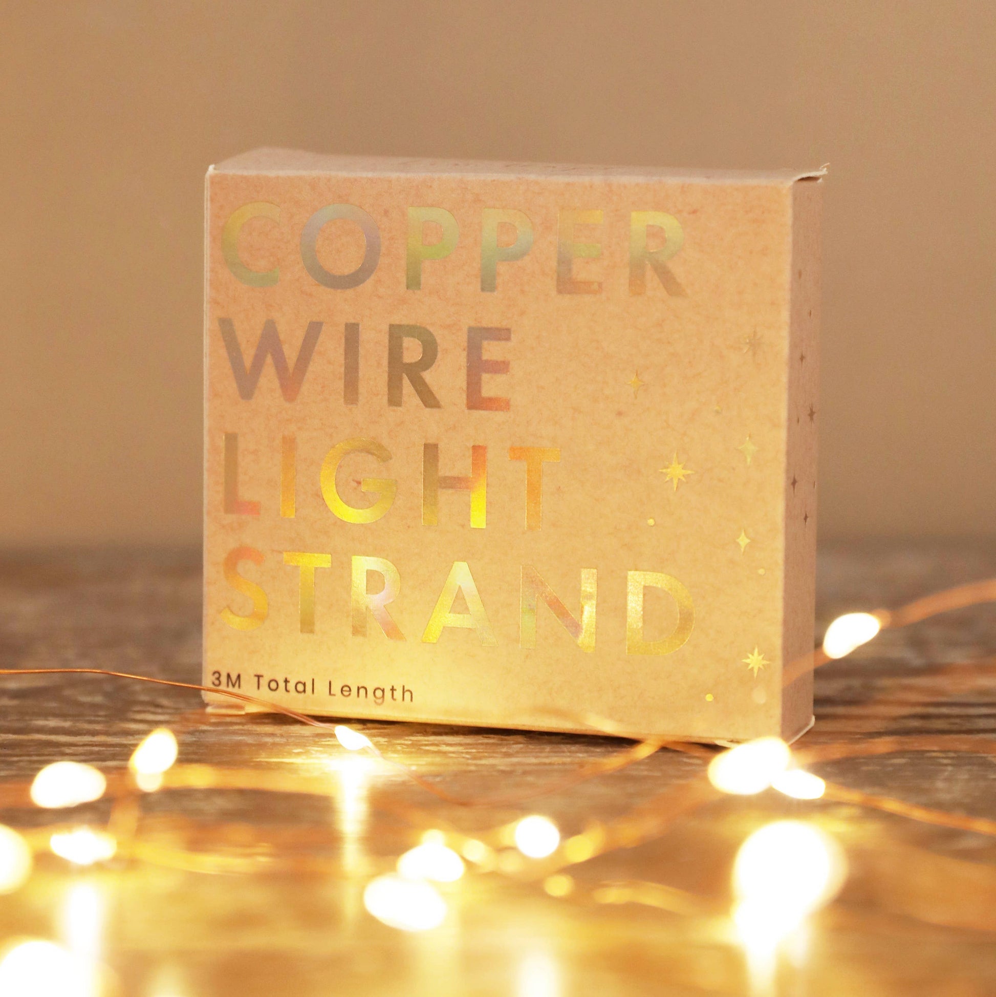 A sparkling light strand for adding some twinkle and warmth to your festive decor or to your home. Truby delicately spun copper wire strand lighting, with 30 small intricate LED lights spanning across a 3 metre length of decorative copper wire.