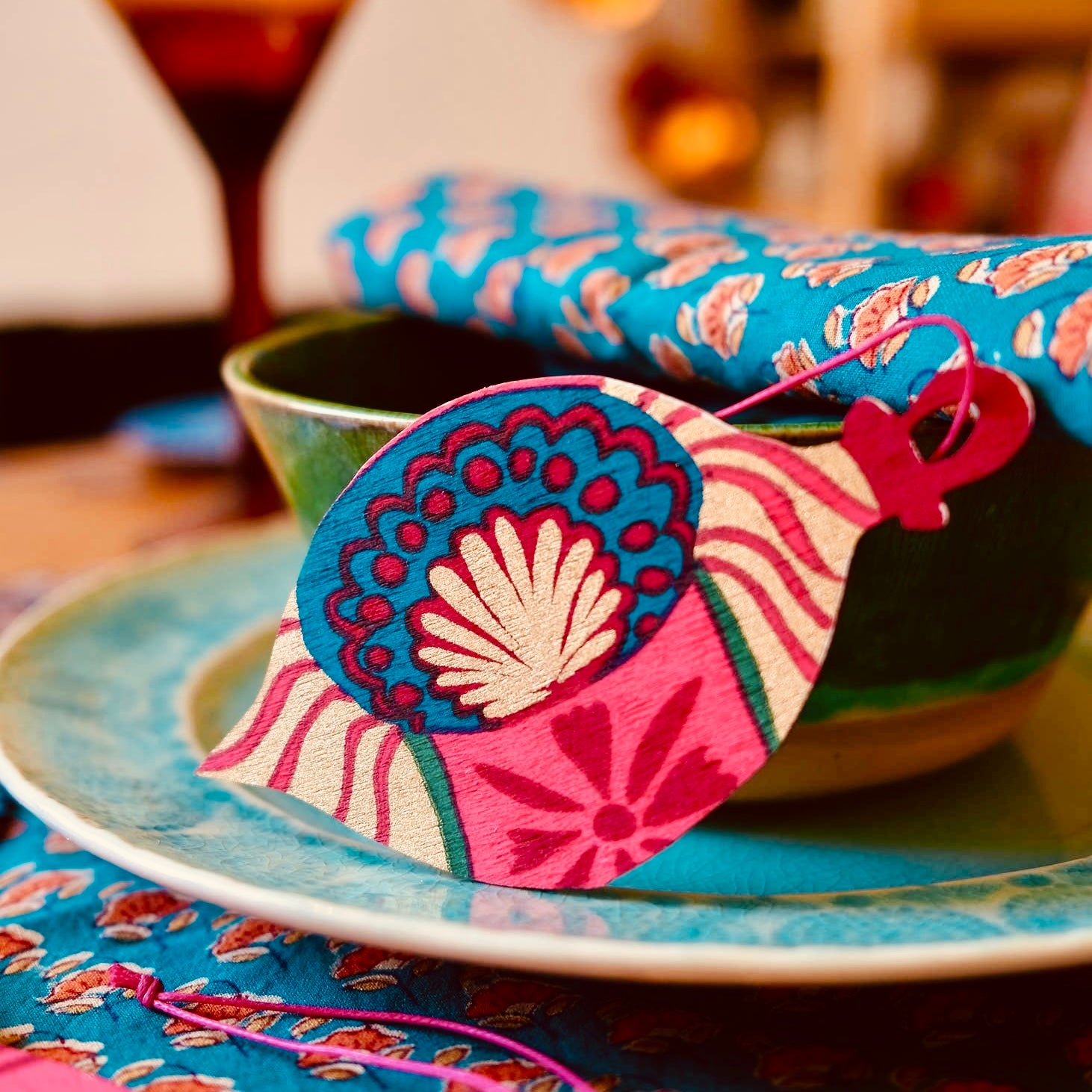 Crafted from wood, each decoration has a different design, and is made from sustainably sourced, FSC certified wood which is screen printed by hand on both sides.