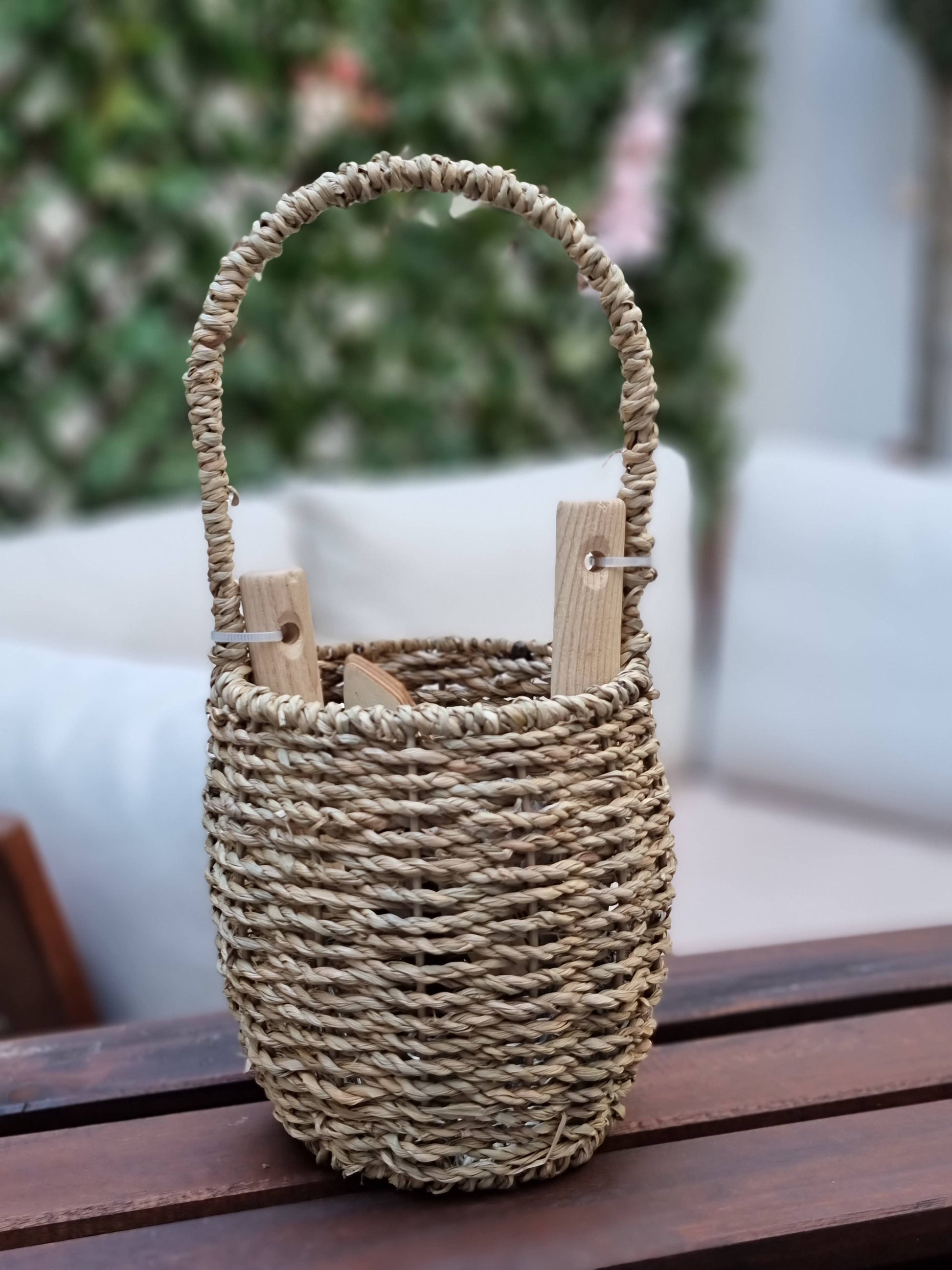 The perfect gift for any garden lover! perfect for spring planting, our 6-piece garden tool set consists of a braided rope basket, wooden hand trowel, pruning scissors, plant plug, 15 meter gardeners twine ball and 6 sustainable wooden plant markers.