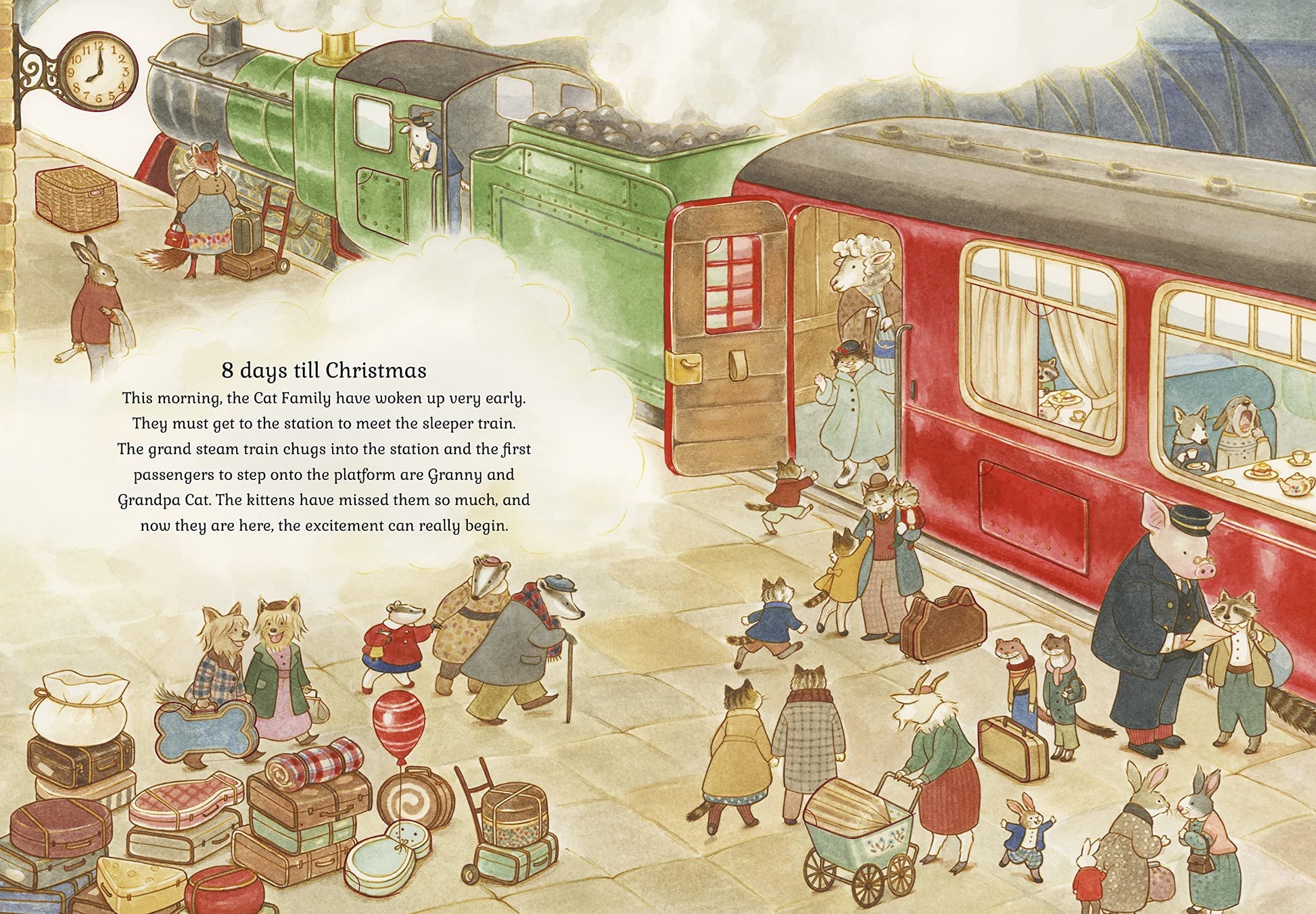 Count down to Christmas with the Cat Family in this lift-the-flap advent book with more than 130 doors to open, as you help them decorate, bake and prepare the house for the holiday season. Peer inside the cupboard doors and different-sized tins in the busy Cat Family kitchen to find the missing ingredients for the cake. Open all the front doors on the street when the Cat Family go carol singing. This whimsical Christmas book is rich with Liberty print–style pick-and-mix patterns and William Morris–inspired friezes.
