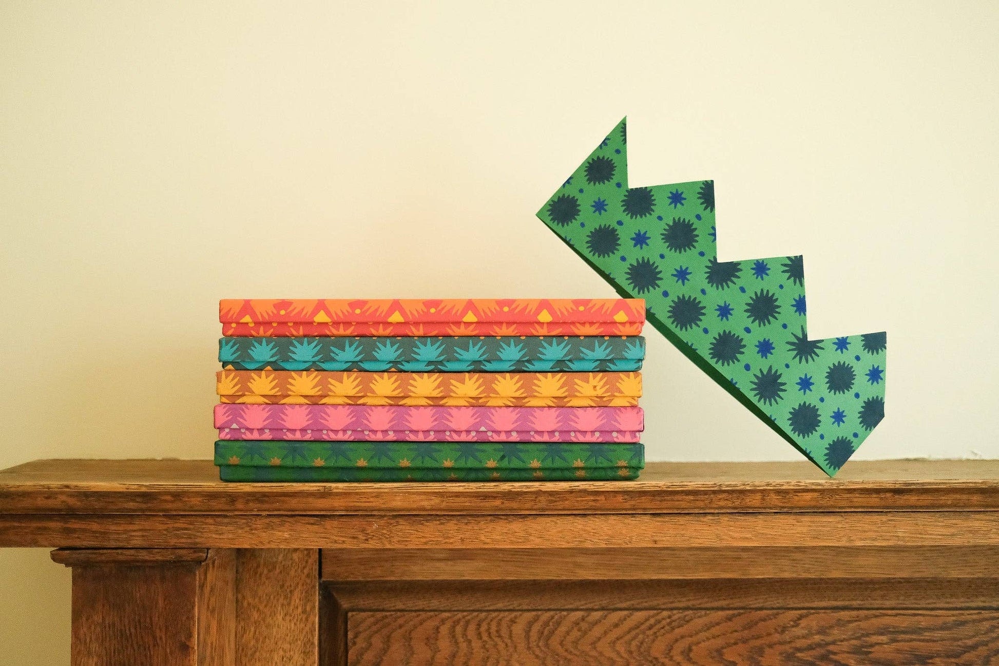 East End Press colourful party crowns are each uniquely screen printed by hand with a different pattern onto recycled paper. Each crown is naturally slightly different. They are sturdy enough to be packed away and reused celebration after each celebration. The crowns are large enough for adult heads, and perfect for adding some fun to your party!