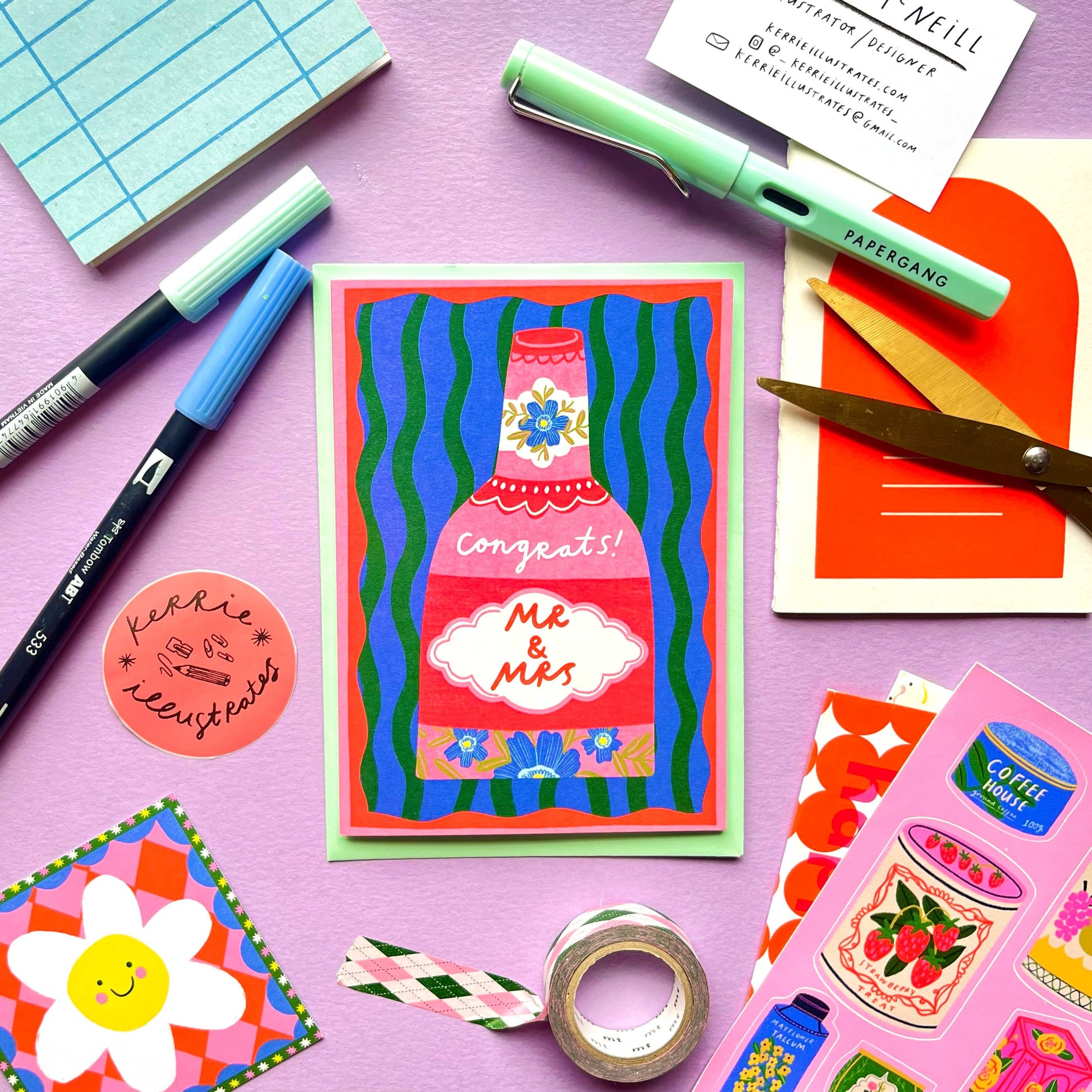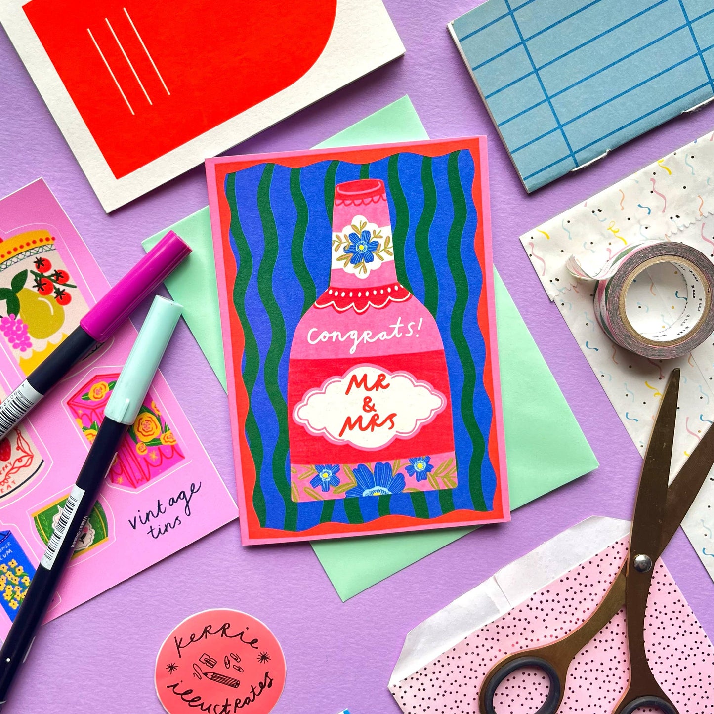 Colourful congratulations card blank inside for your personal message. Card comes with a snazzy coloured envelope included.