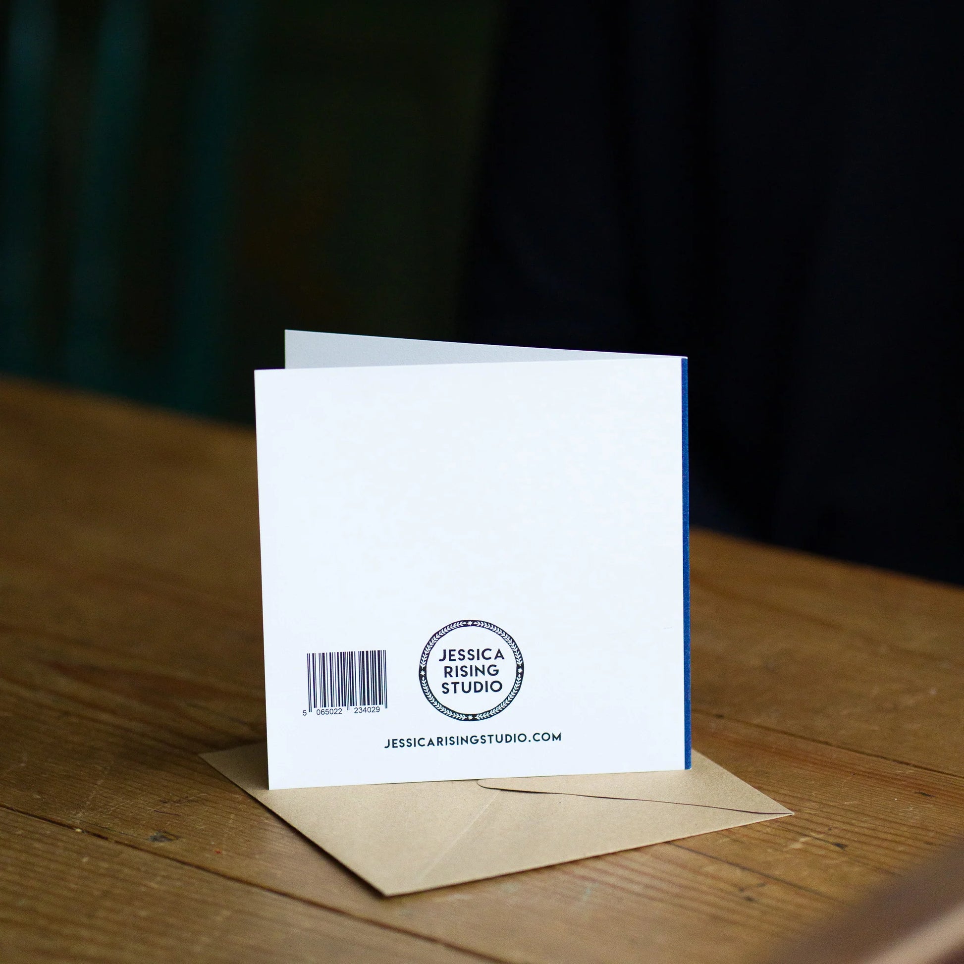 It is printed on high-quality, matte, 300gsm card. Each card measures 15cm x 15cm when folded, and comes with a kraft brown envelope.