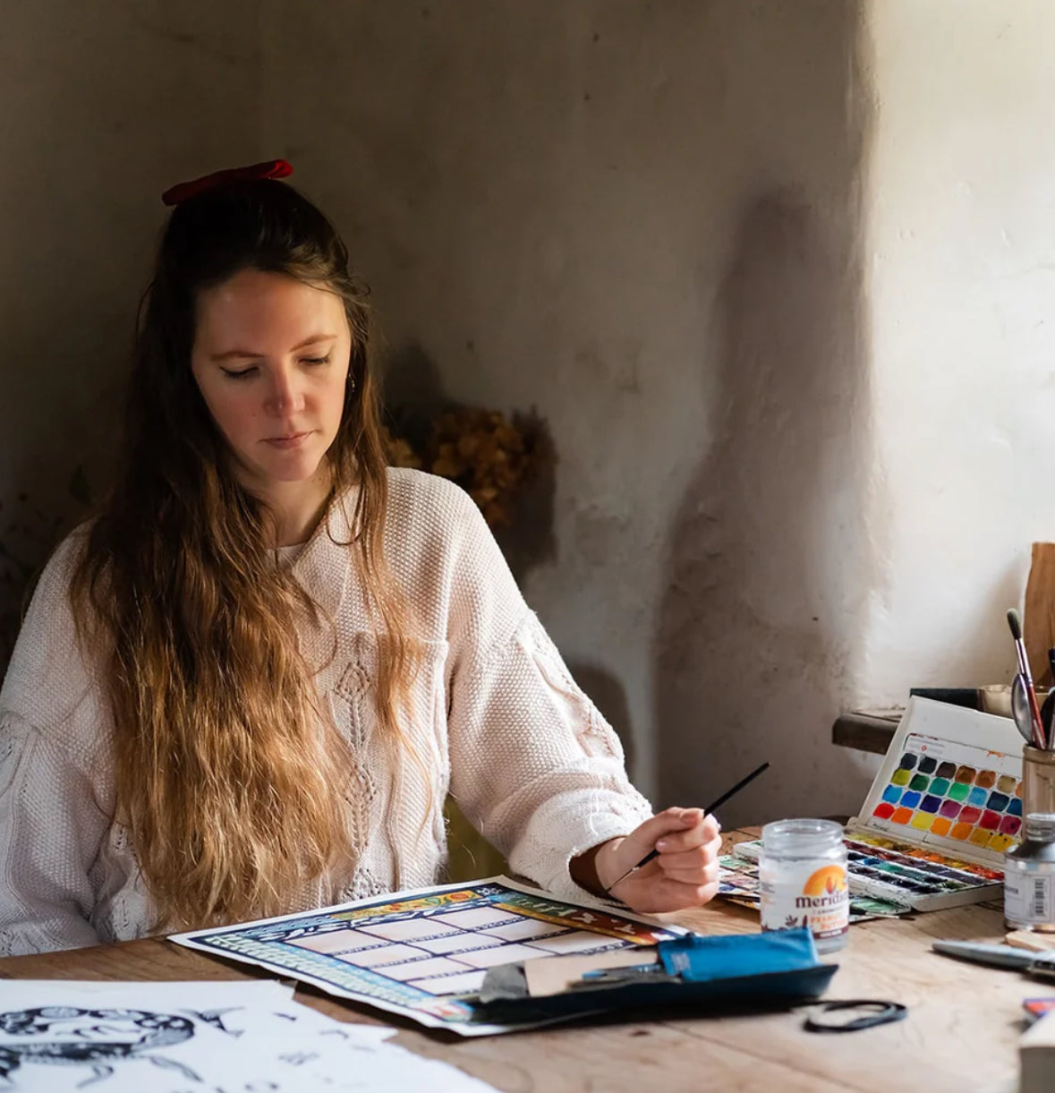 Informally known by many as Jesse, the artist is a mother of two who creates, illustrates and prints from her gorgeous little studio in Wales. Her art is inspired by the untamed natural world, poetry, and folk art.