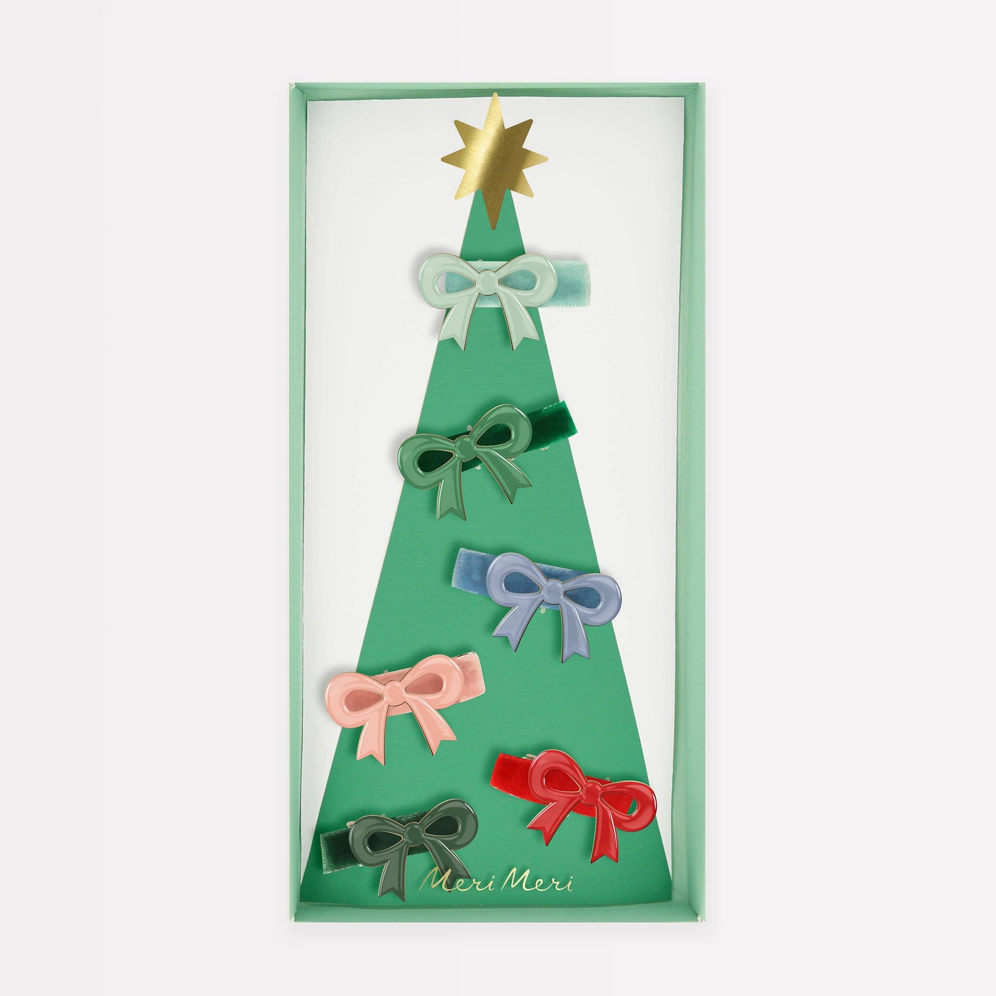 Crafted from colourful enamel and luxurious velvet ribbons, this set of six hair bow clips are the perfect hair accessories for kids or adults to instantly look and feel festive fantastic.