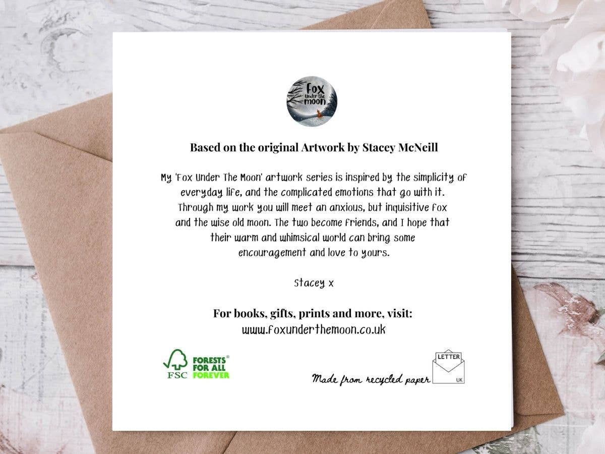 Single greeting card by Fox Under The Moon. Size: 15cm x 15cm square.