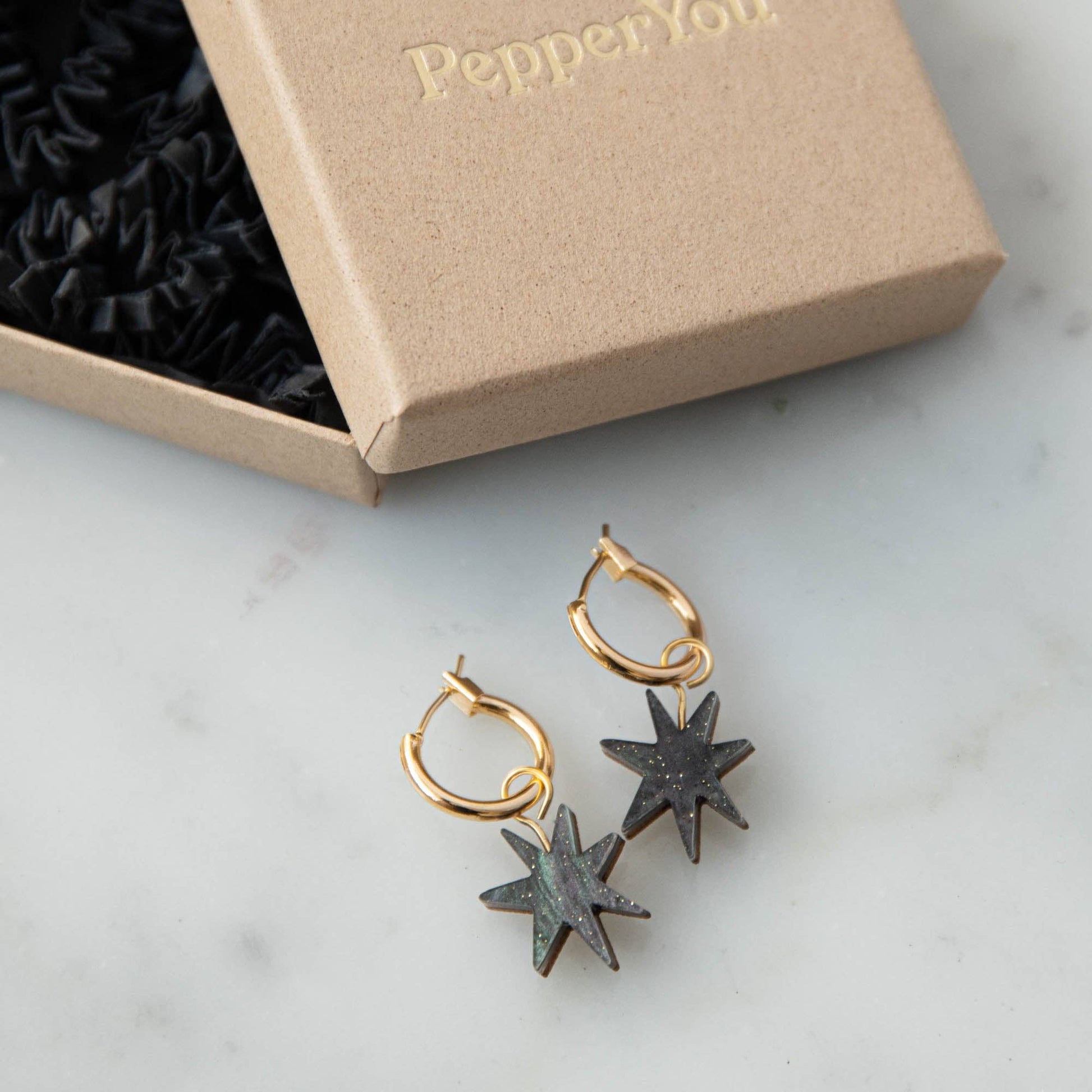Dimensions: Star diameter 1.7cm, Huggie hoop diameter 1.5cm
