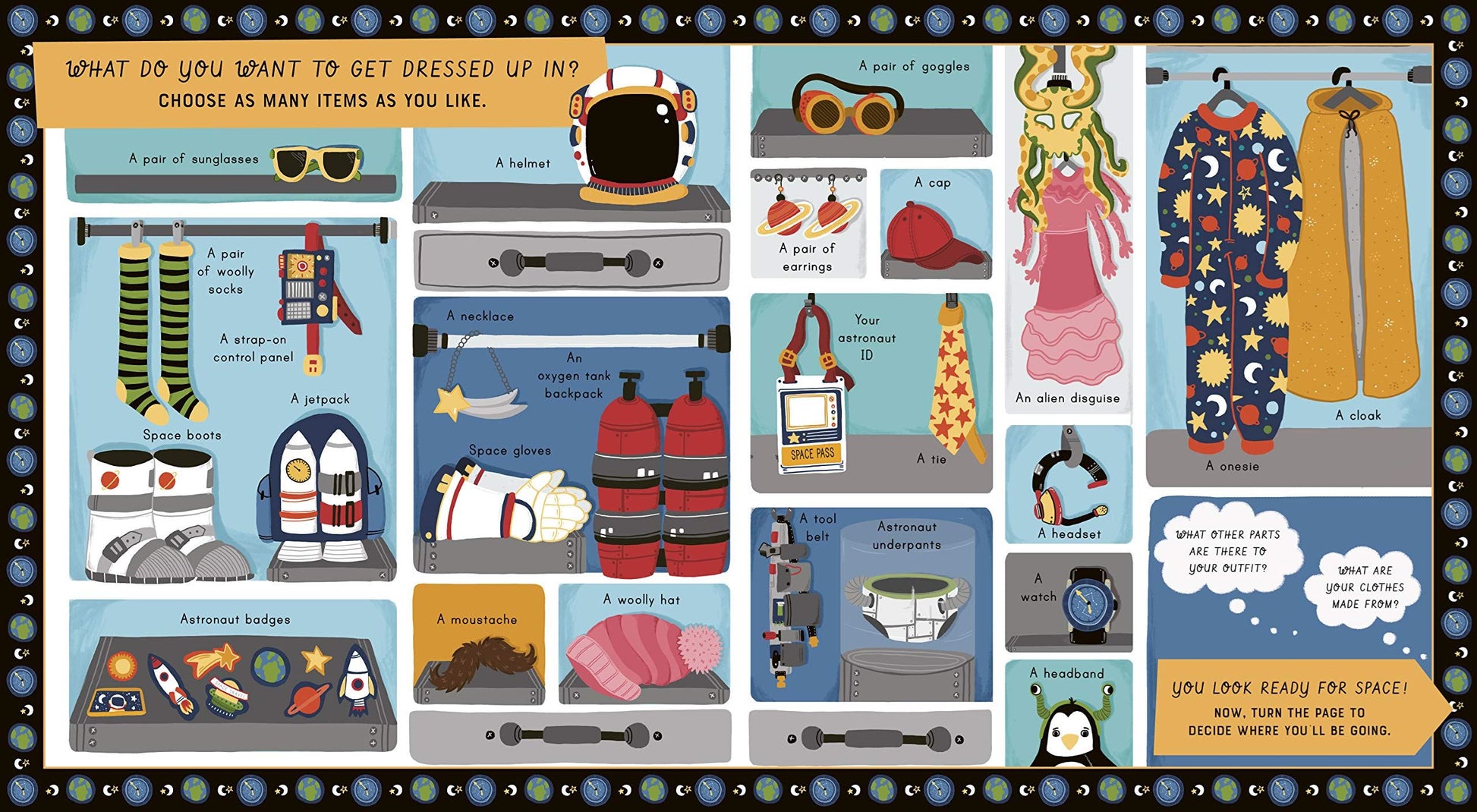Young readers will have endless exciting adventures in space with this story-building activity book packed full of things that they love, like aliens, astronauts, rockets and planets. They simply read the question on each spread and choose from the pictures to create a brand-new story, with imaginative characters, places to go, funny objects and extraordinary situations to choose from. With millions of possible story combinations, this is a book to be read and enjoyed again and again.