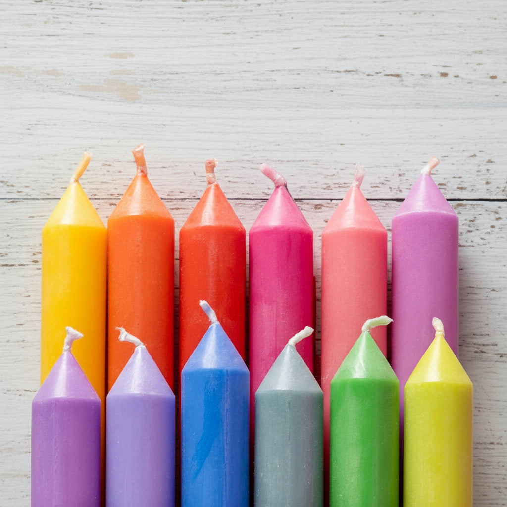 Tall dinner candles in vibrant, dopamine colours perfect for the dull winter months!