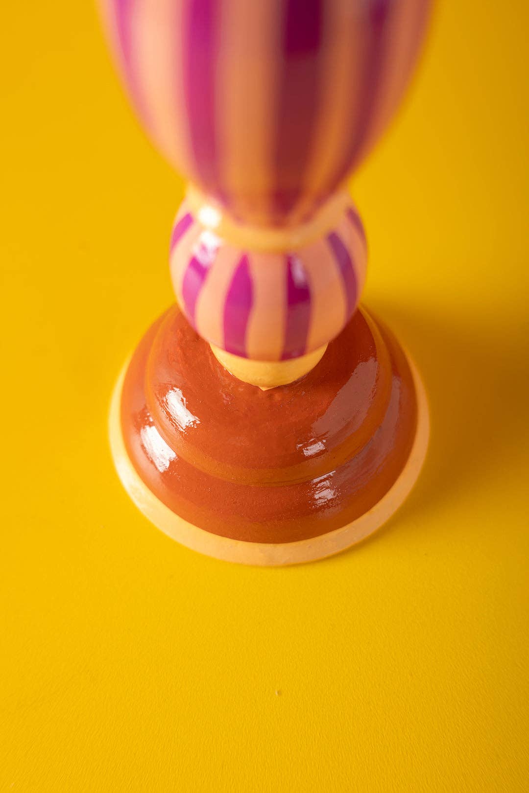 Our collection of bright tones candle holders have been beautifully hand painted in a carnival of vibrant colours. Wood has been expertly carved into wonderful curvy, fluid shapes create effortlessly elegant candle holders fit for any table and any occasion. Pair designs, mix and match, grouped or individual, these candle holders are sure to add a little joy to your décor.