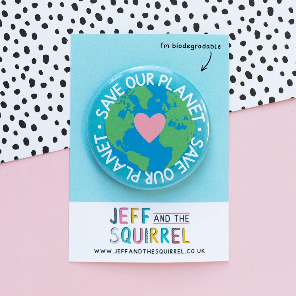 Made from wood, this biodegradable badge is 100% eco friendly! The mould is made from responsibly sourced wood using only solar energy. The mylar coating contains zero plastic and is made from corn starch. The manufacturing process is completely carbon neutral and the whole product can be composted after use - just pop the pin in the recycling! The backing card is 350gsm thick and made using 100% recycled card.