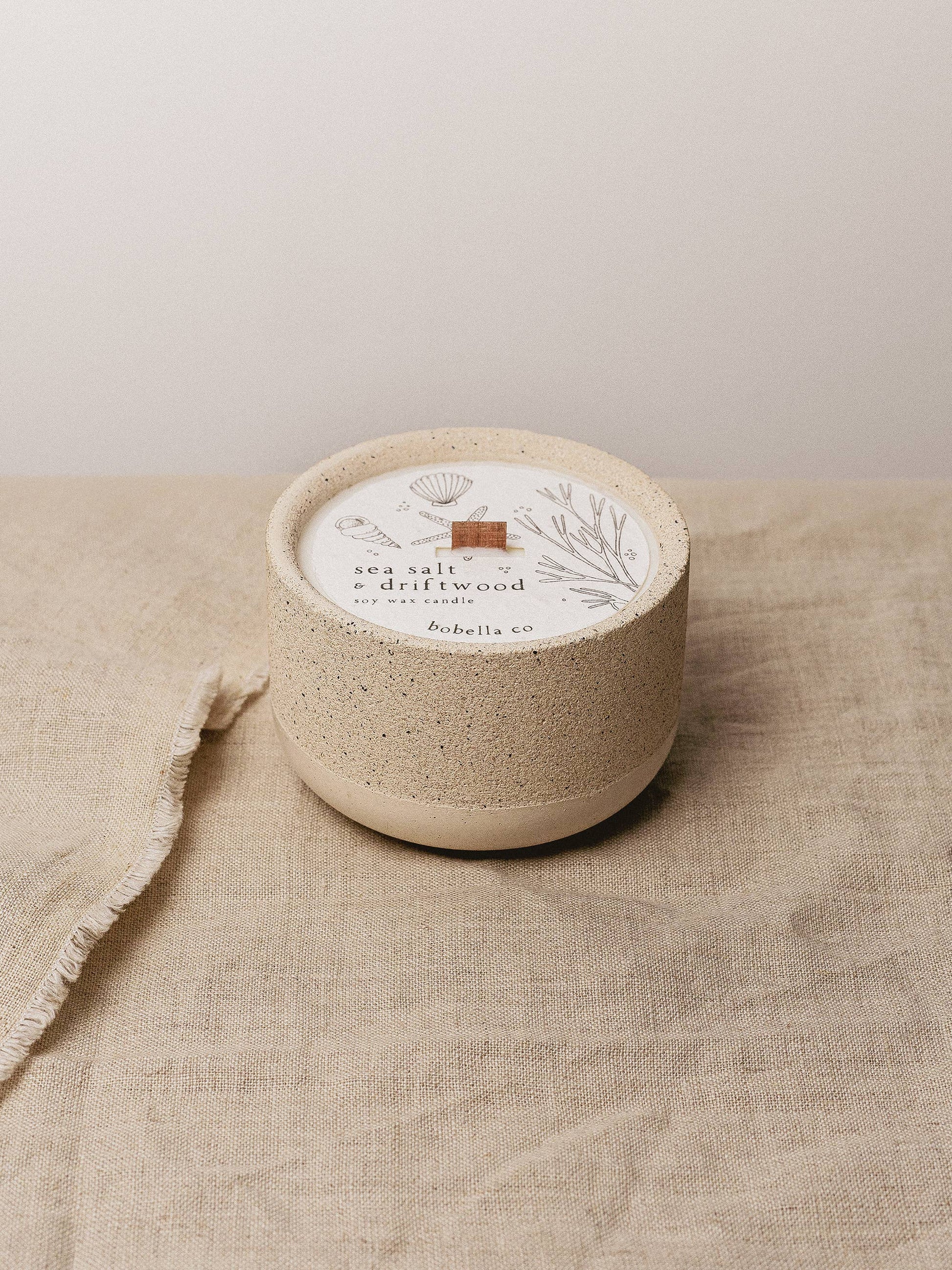 Sea Salt & Driftwood Soy Wax Candle in Hand Cast Reusable Planter