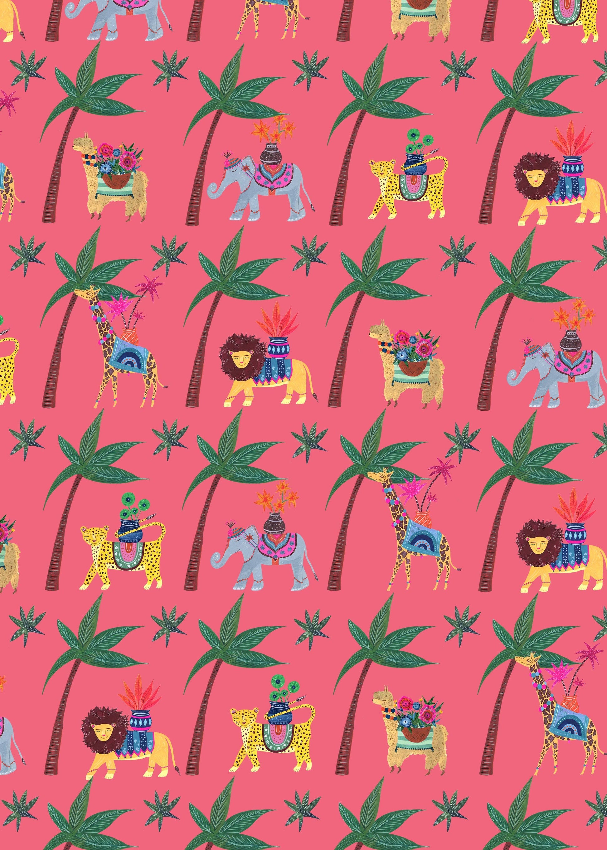 Eye catching and fun, colourful party gift wrapping featuring designs all hand illustrated in the Hutch Cassidy Studio, North Yorkshire. Featuring a selection of the artist’s most popular fantastical animals from her best selling card designs all up against a vivid pink background, this is truly joyous wrapping paper!